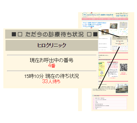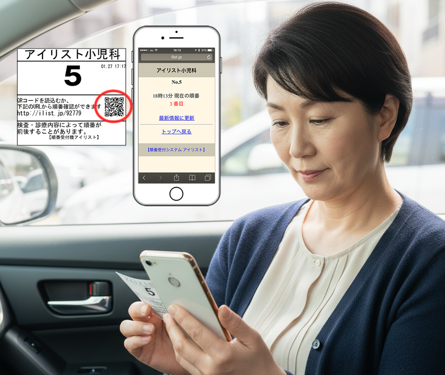 順番受付システム「アイリスト」はWEBと連携し、スマートフォンやPCから混雑状況や呼び出し番号を確認することができます。 来院前に混雑状況を把握できるため、患者様は安心して来院のタイミングを調整可能。 さらに、クリニックのホームページに混雑状況を表示すれば、混雑の平準化にもつながり、院内の負担軽減にも効果的です。
